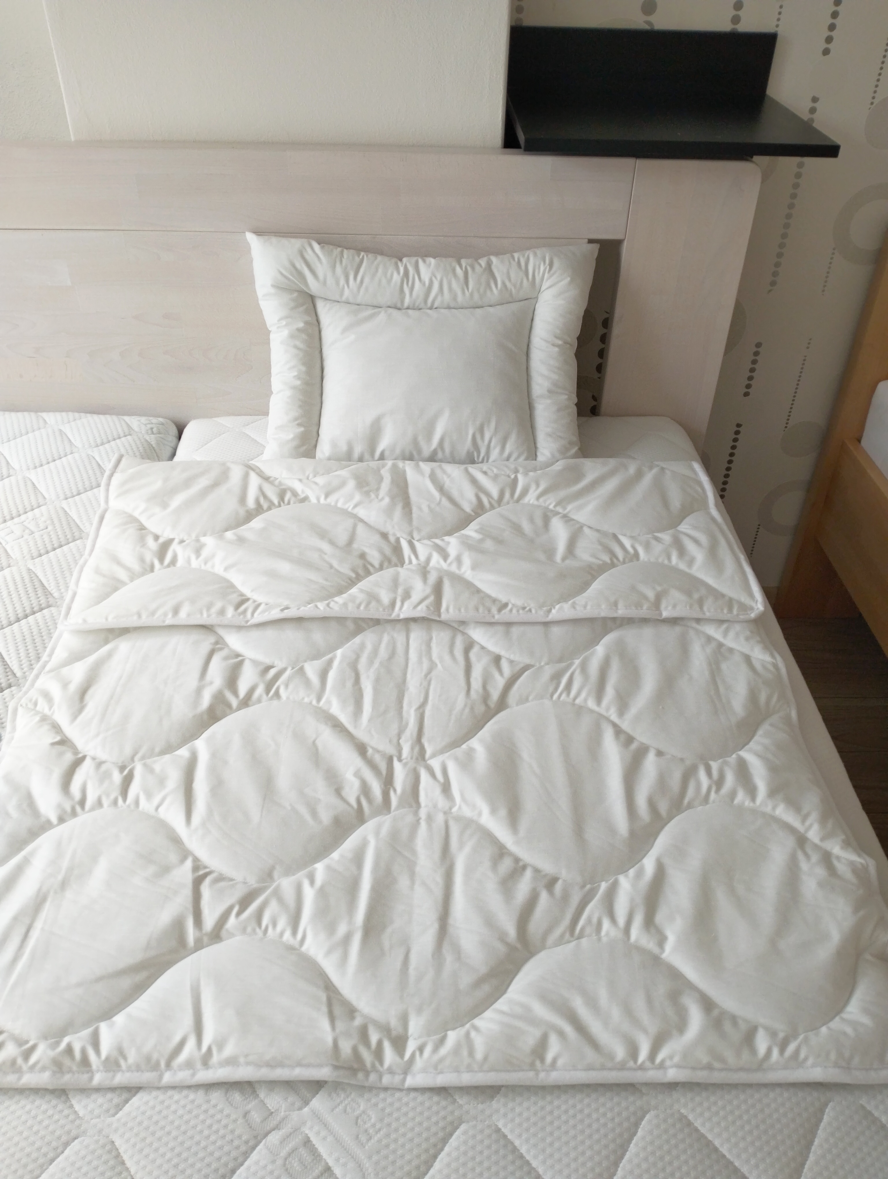 Vysoko kvalitný detský set paplón a vankúš do postielky, ktorý je vhodný pre alergikov a astmatikov. Vášmu dieťatku tak zaručí zdravotnú bezpečnosť a kvalitný spánok. Povrchový materiál 100% bavlna. Výplň tvorí 100 % polyesterové vlákno, ktoré je vysoko odolné voči svetlu, mikroorganizmom a vlhkosti. Kvalitný detský bavlnený set pôsobí príjemne na dotyk a nedráždi pokožku detí, je vyrobený z najkvalitnejších materiálov.