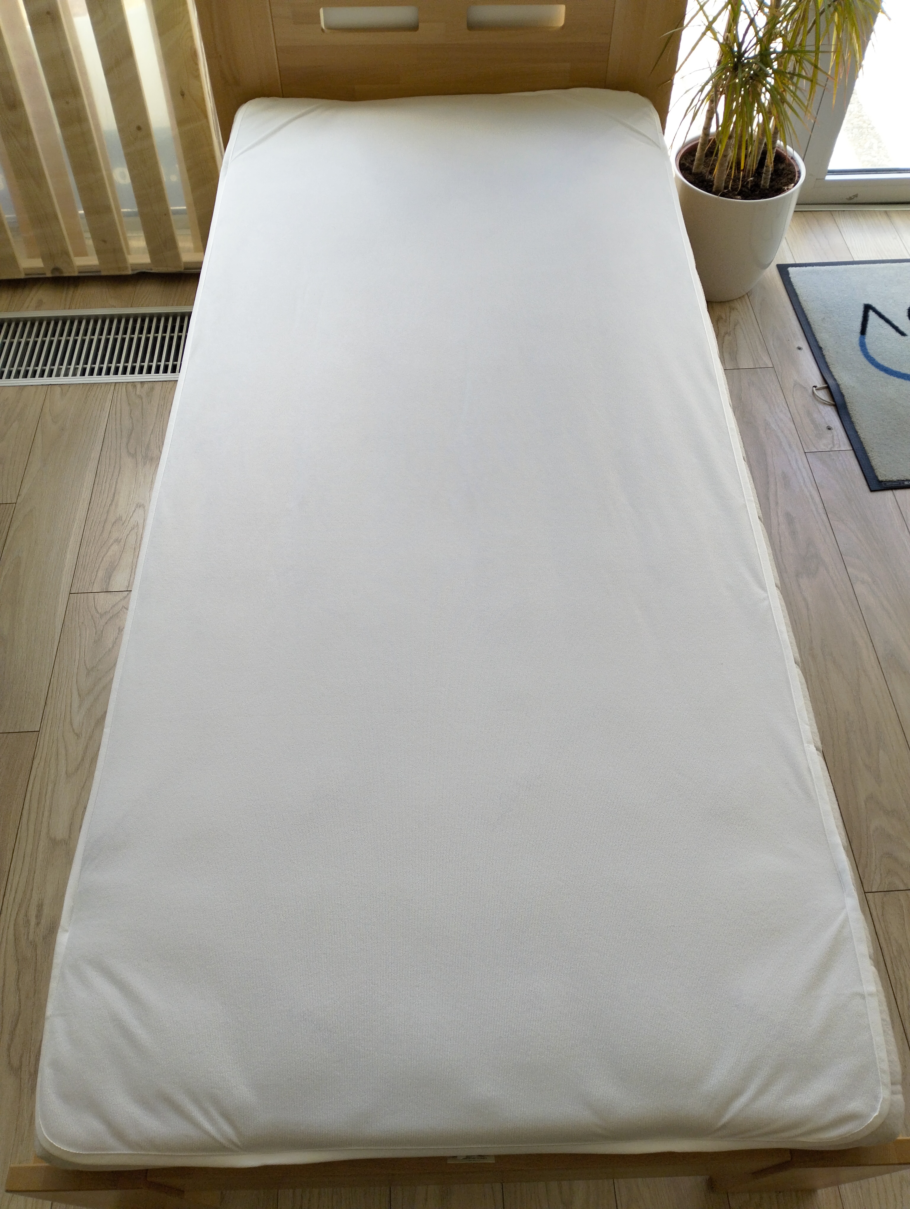 Antibakteriálny nepremokavý froté chránič matraca, šijeme z moderného dvojvrstvového froté materiálu s hustotou 110gr/m2. Nepriepustnú časť chrániča tvorí vrstva s nepremokavou membránou, ktorá je na spodnej strane chrániča, dvojvrstvový froté materiál tvorí vrchnú časť chrániča. Chránič sa dáva navrch matraca, po rohoch ma napínacie pásy a upne sa o roh matraca a je na pevno, nešmýka sa po povrchu matraca. Froté chránič matraca je nepriepustný, vďaka čomu udržuje matrac v suchu a čistote. Ide o jednoduché a elegantné riešenie ochrany matracov. Ochráni pred tekutinami a nebráni matracu prirodzene dýchať.