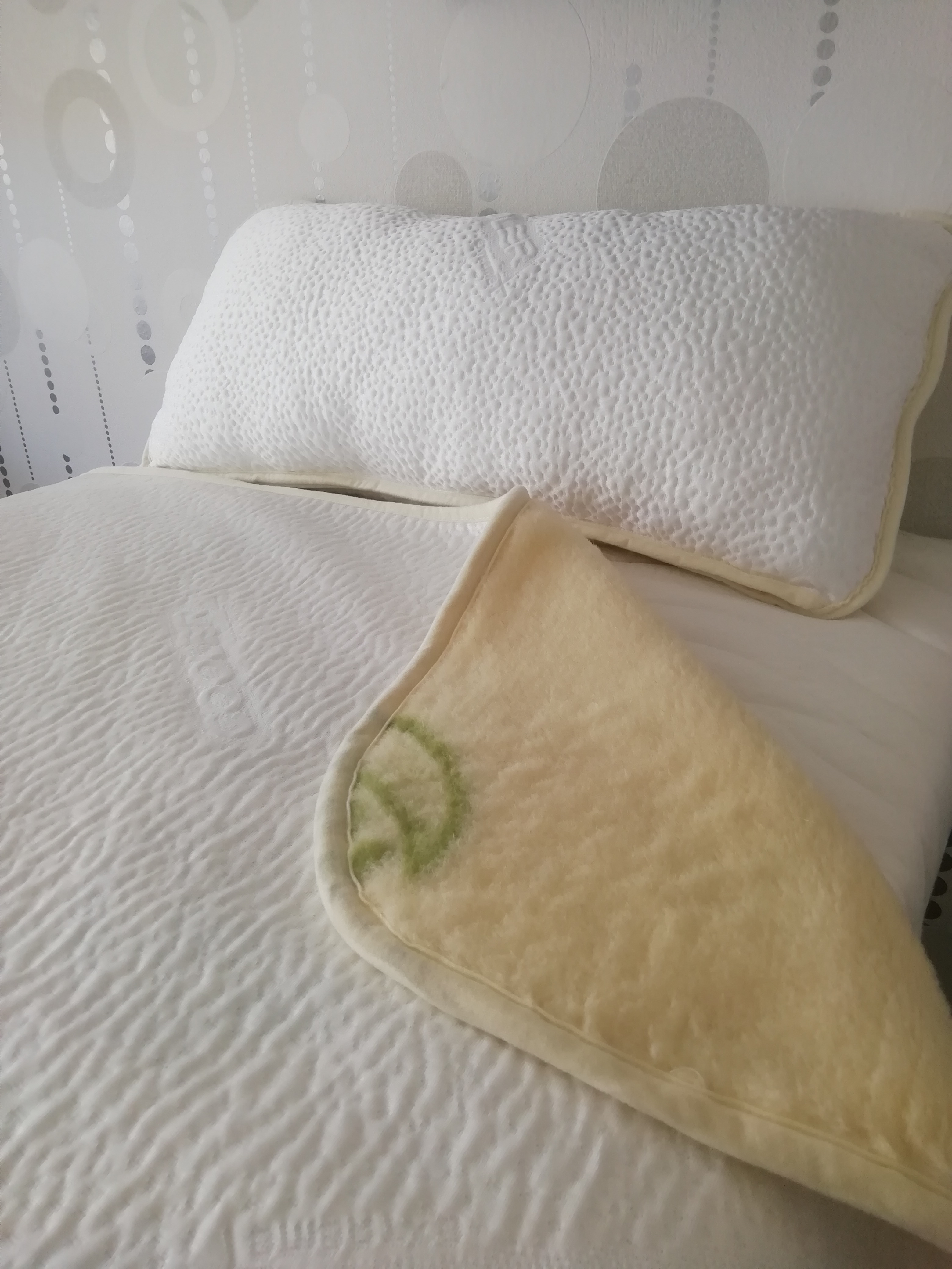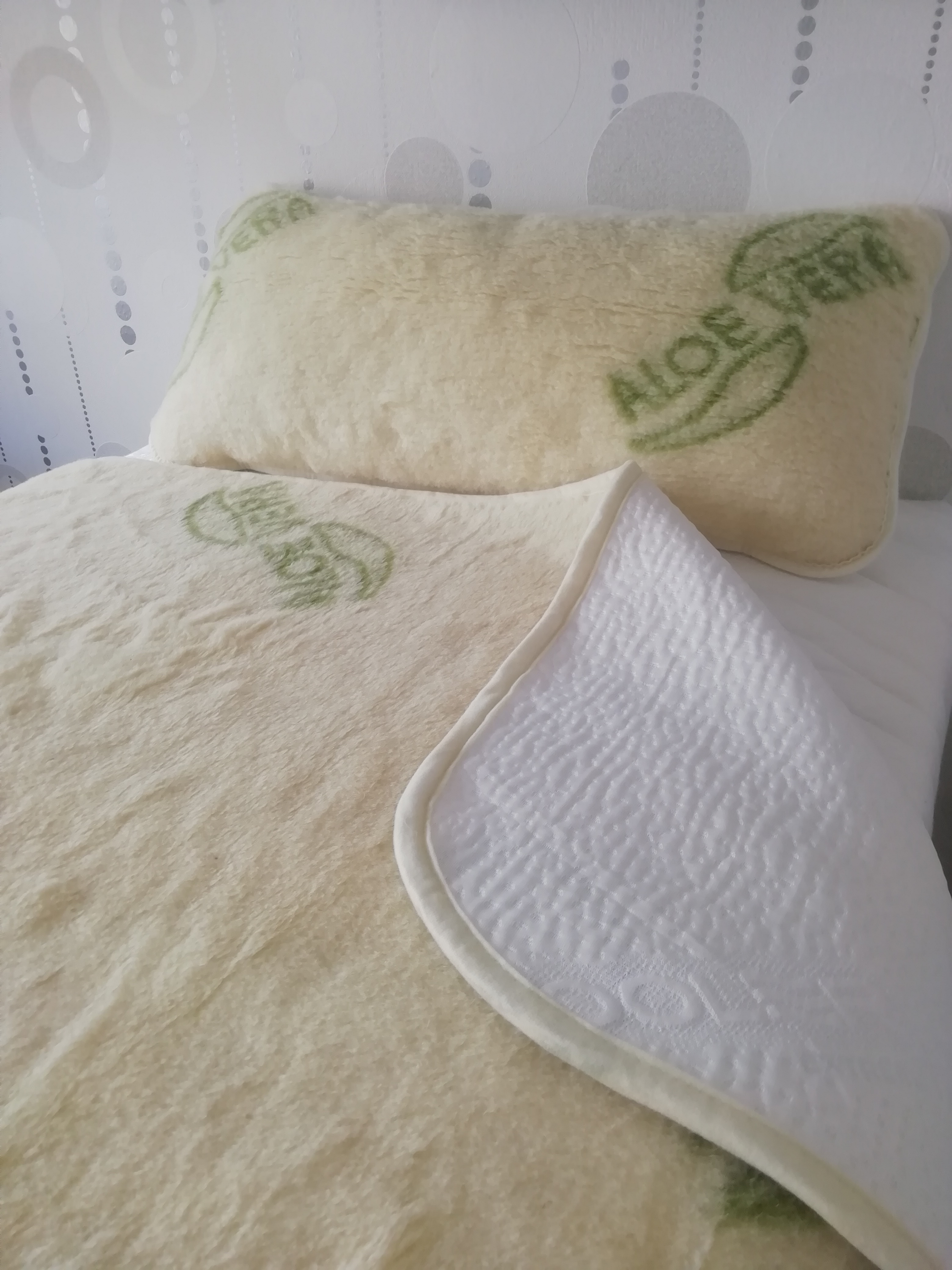 Rovnako aj ručne šitý vankúš má z jednej strany príjemný na dotyk, chladivý poťah Cooler, a z druhej strany je 100% prírodná Merino vlna v kombinácii s Aloe Vera, ktorá Vás zasa zahreje. Vankúš je odzipsovateľný, v rozmeroch 80x 40 x 16 cm. Rozmer prikrývky je 200x140. Čistenie a ošetrenie podľa symbolov na etikete. Doporučujeme chemický v čistiarni raz ročne. Nedoporučuje sa prať v práčke! Na tento set vankúš prikrývka máte predlženu záruku 10rokov.