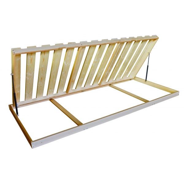 Pevný masívny rošt MASÍV s bočným výklopom je praktický rošt do postele s výklopom zboku pre prístup do úložného priestoru postele. Vďaka svojej konštrukcii je pevný masívny rošt MASÍV s bočným výklopom vhodný až do hmotnosti 150 kg.