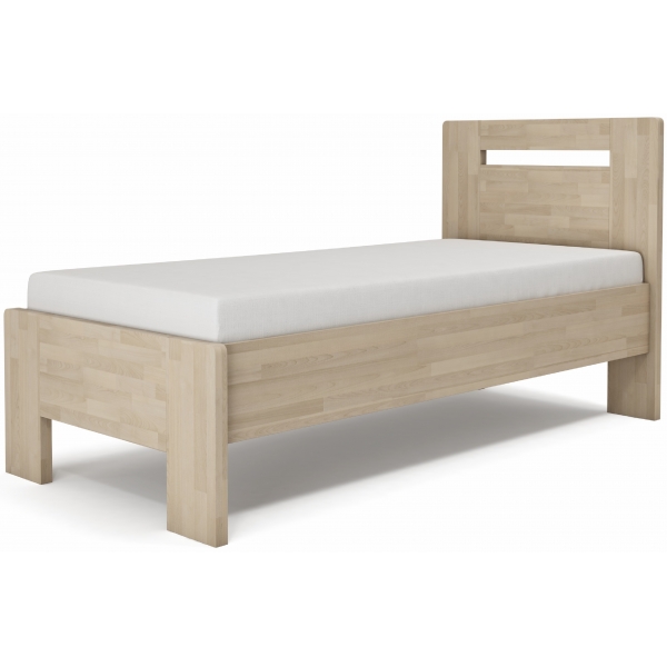 Precízne spracovaná jednolôžková masívna posteľ IZABELA má horizontálne rozdelenie čela, čo ho vizuálne odľahčuje. Veľmi kvalitný slovenský spálňový nábytok, vyrobený z odolného masívneho bukového alebo dubového dreva a hrúbka použitého materiálu je 3 cm pri bočniciach, 4 cm pri čelách a výška po hornú hranu bočnice je 50 cm a výška čela pri hlave je 110 cm. Rozmery postele si môžete zvoliť štandardné na šírku 90 cm, 100 cm, 120 cm a na dĺžku 200 cm, 210 cm a 220 cm, avšak Vám vieme vyrobiť posteľ v akýchkoľvek atypických rozmeroch. Je aj možnosť výberu plného čela pri nohách za príplatok. Postele vyrábame vo vzore cink – parketový vzor. Vďaka nastaviteľnému oceľovému kovaniu, ktoré má až 5 polôh, si viete prispôsobiť aj výšku matraca spolu s roštom, aby ste sa pri spánku cítili najkomfortnejšie. Na povrchovú úpravu postele je použitý špeciálny prírodný ECO lak, čo Vám zaručí trvácnosť a odolnosť na dlhé roky. Na výber máte aj možnosť morenia vo viacerých farebných odtieňoch. Masívna jednolôžková posteľ IZABELA Vás svojím nadčasovým designom očarí a hodí sa tak do každej spálne. Ide o súhru prírody a moderného designu. K posteli je možné objednať aj doplnky ako nočné stolíky a komody s drevenými alebo kovovými nohami.