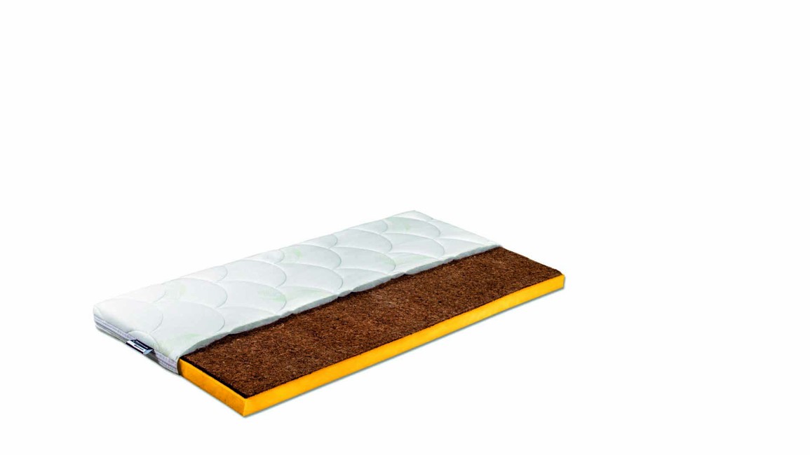 Pohodlný, 7 cm vysoký nelepený matrac je vyrobený z vysoko elastickej HR peny a prírodnej kokosovej vložky. Použitý materiál sa vyznačuje výbornou pružnosťou a tvarovou stálosťou. • zabezpečené potrebné prevzdušnenie vďaka kokosovej vrstve • dostatočne pružný a tvrdý podklad pre správne tvarovanie chrbtice rastúceho dieťaťa • matrac dvojitej tuhosti, obojstranne použiteľný • štandardné vyhotovenie v poťahu – ALOE VERA • certifikovaný a zdravotne nezávadný OEKO – TEX štandard 100 • HR 35 kg/m3, kokosová vrstva 1300 gr/m2 Poťah - ALOE VERA • poťahová látka s výťažkami z tejto rastliny obsahuje prevažne enzýmy, minerálne látky a aminokyseliny, ktoré veľmi pozitívne pôsobia na pokožku a posilňujú relaxačné účinky spánku • príjemne mäkký poťah so schopnosťou regenerácie pokožky ľudského tela, vlastnosti tejto látky zaručujú dostatočnú hygienu • certifikovaný a zdravotne nezávadný OEKO-TEX štandard • zloženie: 85 % polyester; 15 % viskóza, obohatený o výťažky z aloe vera, poťah prešitý s klimatizačnou výplňou, PES vláknom 250 gr/m2 • antibakteriálny, antiroztočový, odzipsovateľný a prateľný do 60°C