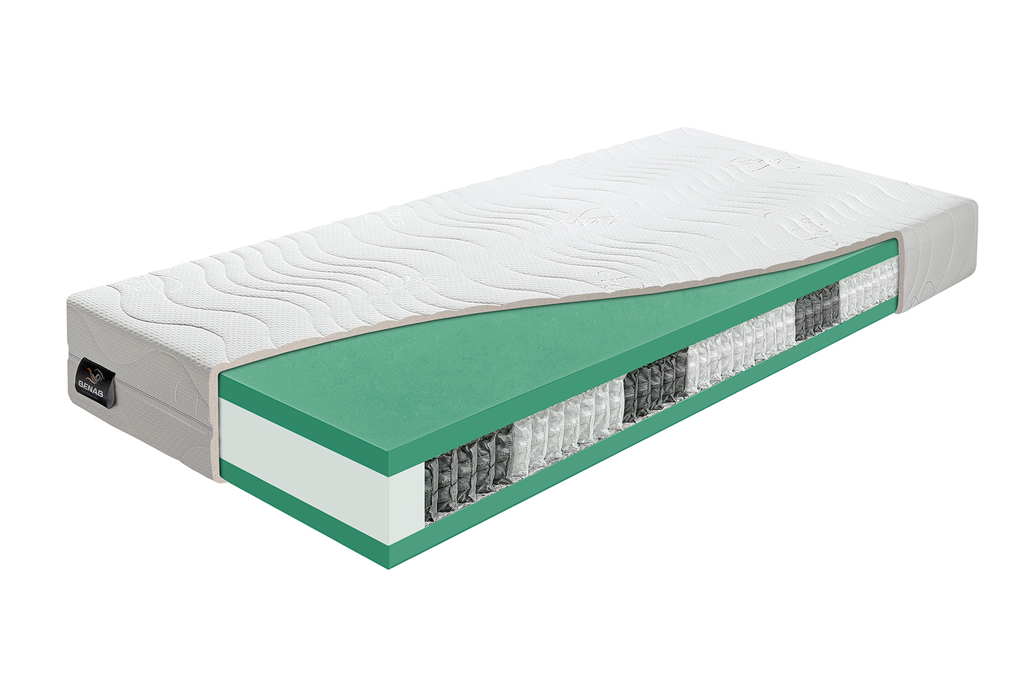 Použitý materiál BIO 40kg/m3 pena 4 cm (zelena), taštičková pružina 650 ks/m2 – 7 zon, BIO 40kg/m3 pena 4 cm (zelena)