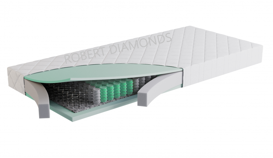 Väčší počet pružín, konkrétne 500 kusov na lôžko, rozložených do 7 zón tuhosti, zabezpečuje, že taštičkové jadro matraca dokonale kopíruje tvar ľudského tela. To napomáha lepšej ortopedickej podpore chrbtice. Vrchné a spodné vrstvy matraca tvorí PUR pena s hustotou 40 kg/m³, ktorá poskytuje optimálny komfort a podporu.