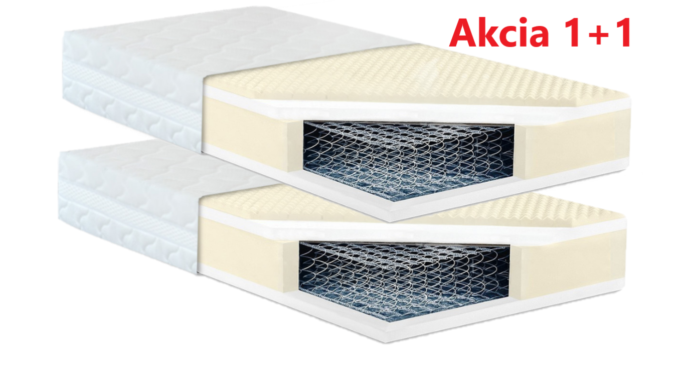 Matrace máme už skoro rok. Objednali sme to s priateľom, a obaja sme veľmi spokojní. 1+1 akcia bola pre nás nejlepšou možnosťou, čo sme našli, takže dostali sme 2 matrace za nízku cenu a realtívne za dobrú kvalitu. Určite odporúčame.