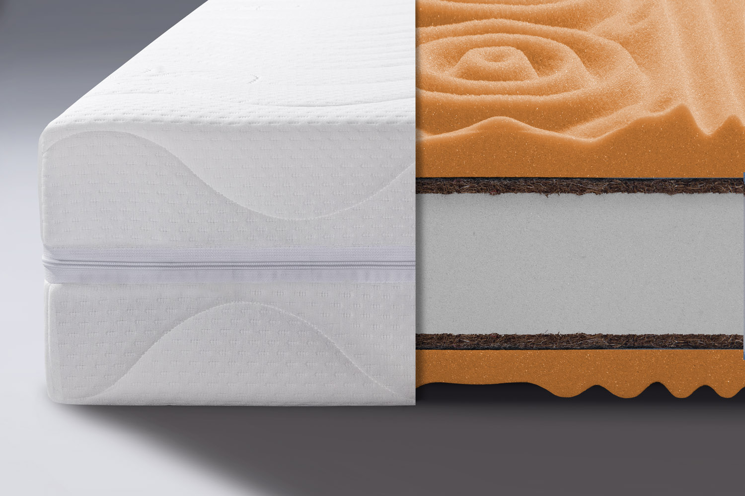- PUR 7 zón profil 28 kg/m3, 2 x kokosová vrstva 1300 gr/m2, PUR jadro 30 kg/m3